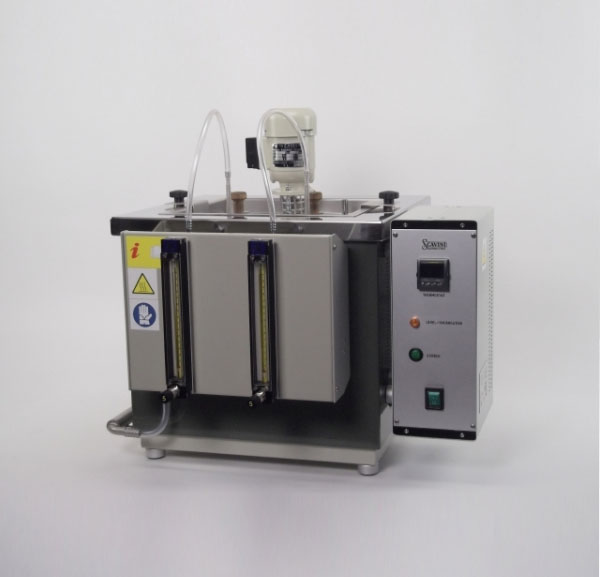Water washout characteristics of lubricating grease - ASTM D1264The apparatus, in acc. with ASTM D 1264, consists of a benchtop case supporting the motor, the bath, the pump and the water pipes. All the electronics is contained in a control box fixed to the instrument body.